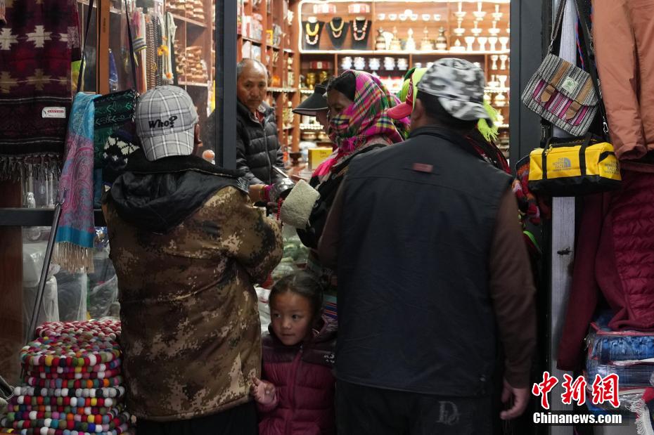 9月30日,民眾在位于西藏阿里地區(qū)普蘭縣的唐噶邊貿(mào)市場(chǎng)選購(gòu)商品。中新社記者 崔楠 攝