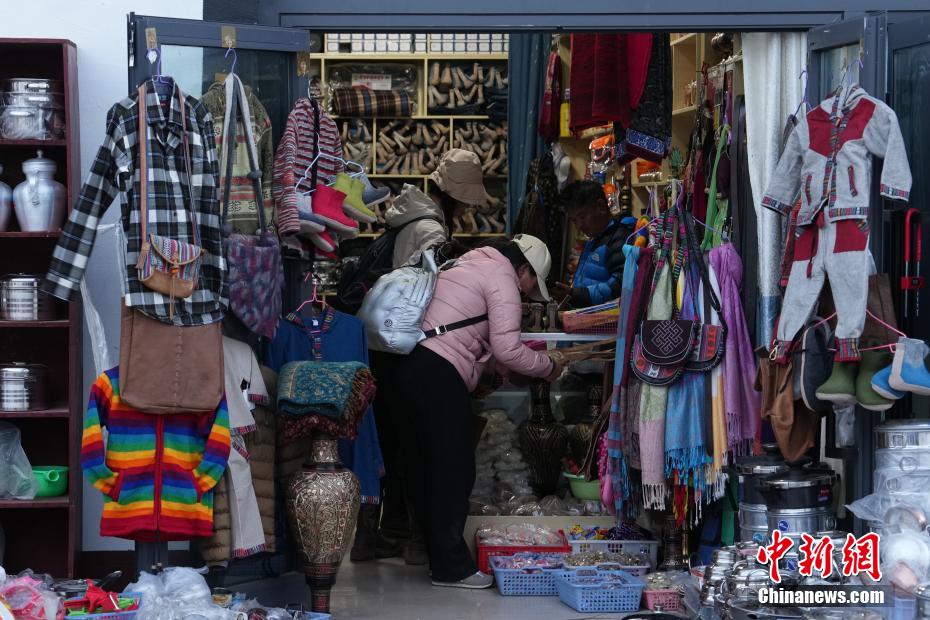 9月30日,游客在位于西藏阿里地區(qū)普蘭縣的唐噶邊貿(mào)市場(chǎng)選購(gòu)商品。中新社記者 崔楠 攝