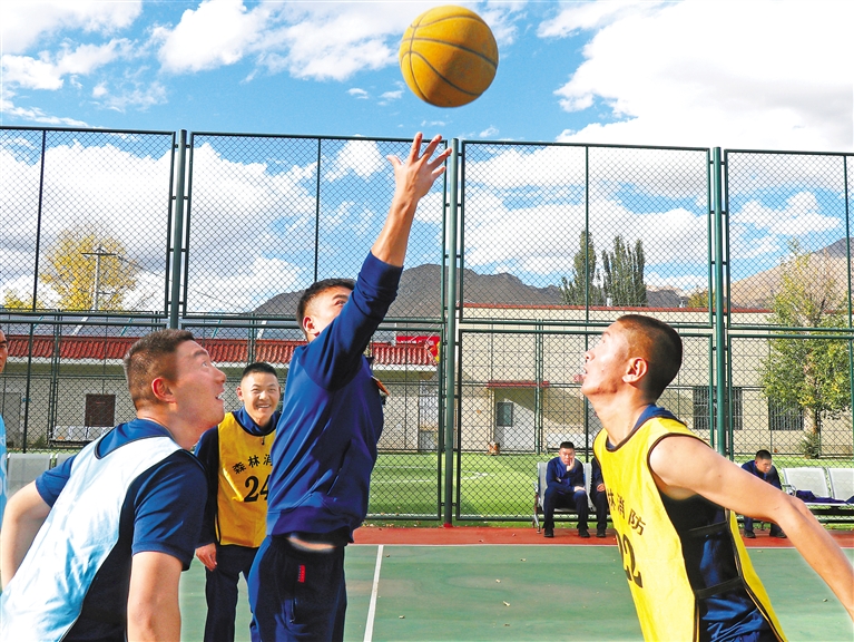 圖為西藏森林消防總隊新訓(xùn)大隊開展籃球比賽。記者 劉倩茹 攝