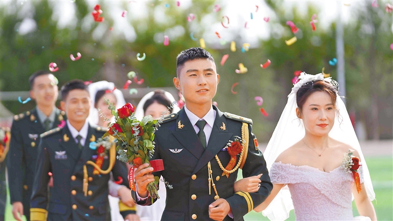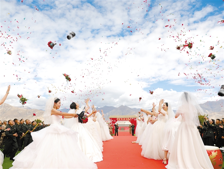 10月4日,西藏軍區(qū)某部舉辦第四屆“情系邊疆、愛灑高原”集體婚禮,26位新娘自五湖四海而來,與該部官兵攜手步入婚姻殿堂。