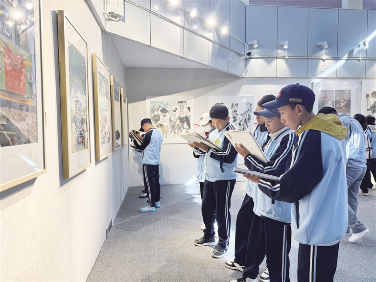 走進展廳,首先映入眼簾的是一幅幅色彩斑斕、構圖精美的畫作。這些作品主題緊扣民族團結進步、鄉(xiāng)村振興、城市建設、民俗風情等,展現(xiàn)了各民族地區(qū)的新面貌、新變化、新發(fā)展。