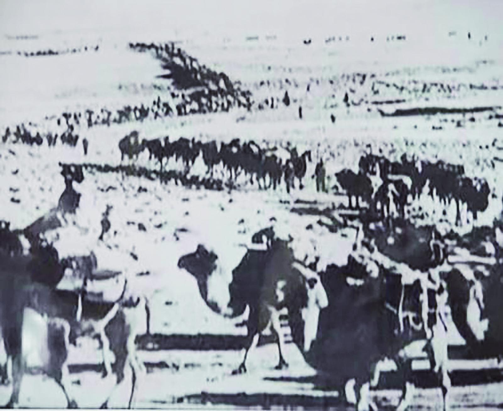 1954年4月,慕生忠宣布,筑路工程隊正式成立。工程隊下設2個測量隊、6個施工隊和1個后勤保障單位。隨后,筑路大軍帶著帳篷,牽著駱駝,用大錘鐵鍬叩響了天路之門。