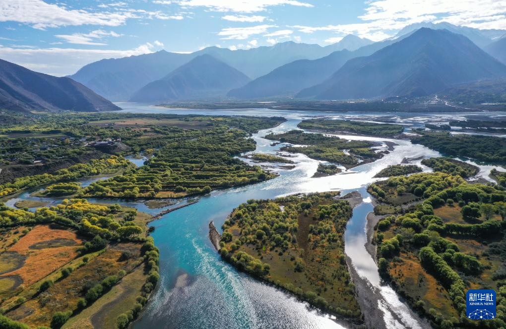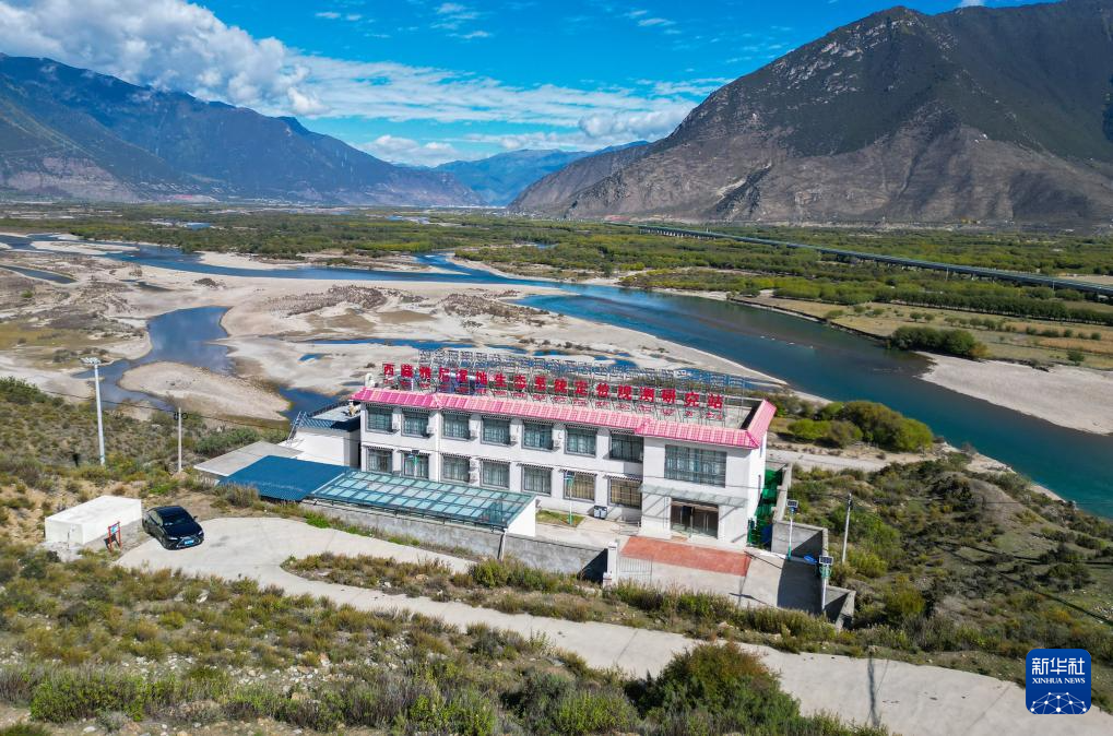 這是在林芝雅尼國家濕地公園尼洋河畔拍攝的生態(tài)監(jiān)測系統(tǒng)(10月24日攝,無人機(jī)照片)。新華社記者 劉天宇 攝