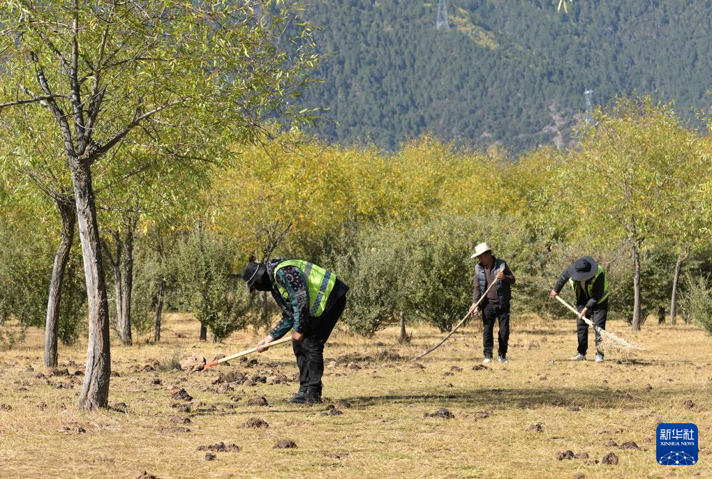 在西藏林芝雅尼國家濕地公園內(nèi),濕地管護(hù)隊員們進(jìn)行每日的例行清理維護(hù)(10月24日攝)。新華社記者 李賀 攝