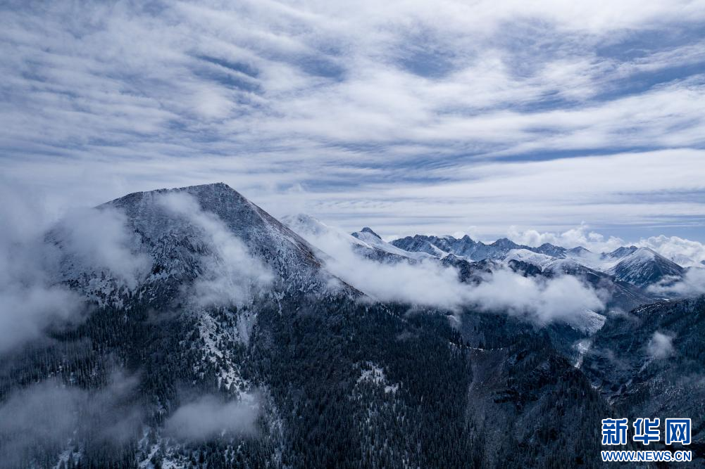 10月13日,在西藏昌都市八宿縣境內川藏公路沿途拍攝的雪山(無人機照片)。新華網 旦增努布 攝