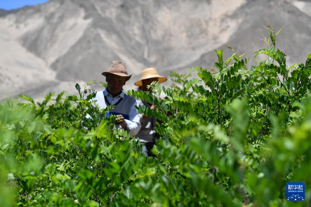西藏山南市貢嘎縣吉雄鎮(zhèn)劉瓊村村民在查看樹苗生長(zhǎng)情況(2021年6月2日攝)。新華社記者 晉美多吉 攝