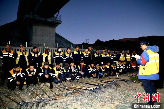 “今晚我們在拉林鐵路扎其站到巴玉站區(qū)間進行卸砟作業(yè),夜間作業(yè)大家一定要聚精會神,確保個人安全。”高原深秋,天氣轉涼,秋意更濃,尤其在傍晚,氣溫驟降。然而,在西藏拉林鐵路澤當特大橋底下,中國鐵路青藏集團公司拉薩基礎設施段桑日綜合維修車間和工務維修技術中心線路專修隊干部職工,正整裝待發(fā),當夜他們將兵分六路,利用夜間“天窗”,對線路進行補砟清道作業(yè)。