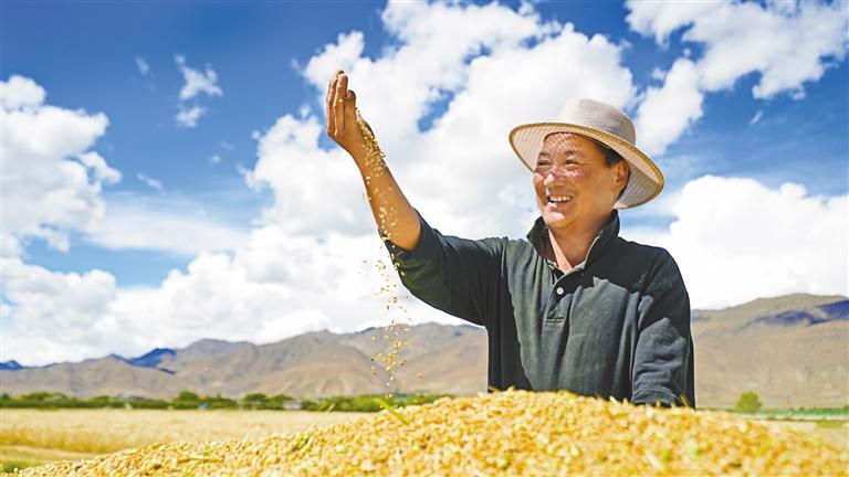 同樣的“豐”景,在日喀則市江孜縣江熱鄉(xiāng)江熱村也在上演,“我家有52畝地,留足口糧后光靠地的收入一年有三萬元左右,與去年相比,今年的產(chǎn)量還要高一些。”江熱村村民格桑說,“過去種青稞,大部分是為了自給自足留足口糧,現(xiàn)在種出來的青稞,能夠制成青稞酒、青稞餅干、青稞酸奶等產(chǎn)品,產(chǎn)品和銷售渠道寬了,農(nóng)民們的收入自然也就高了?!?/p>