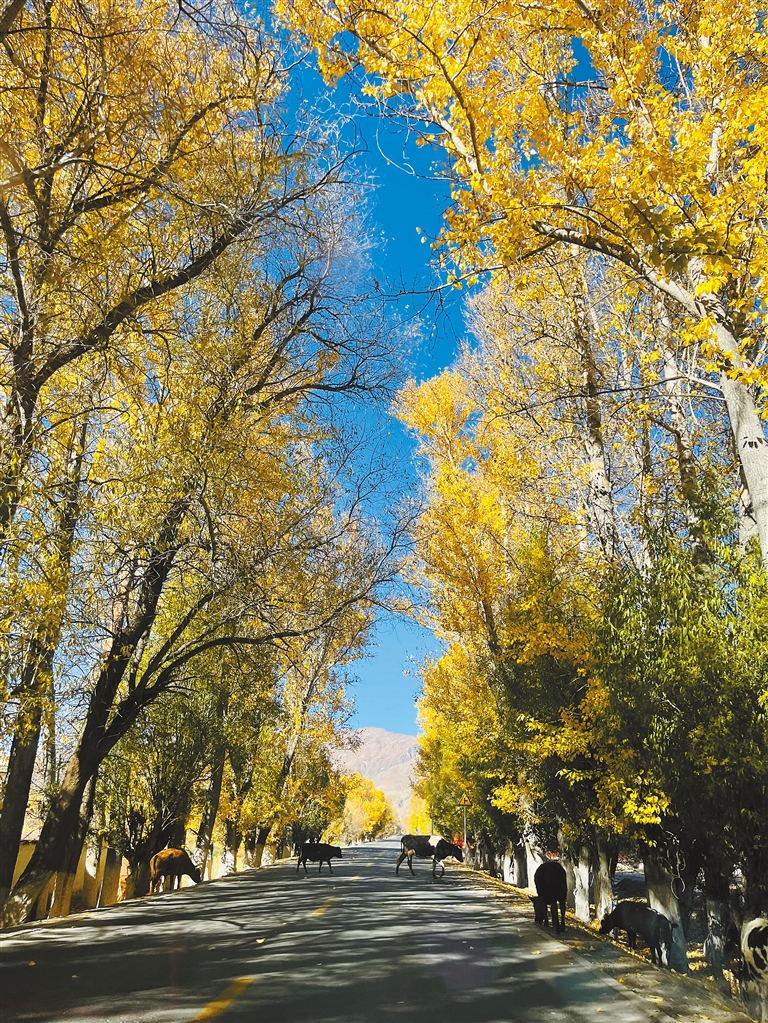漫步在金色的樹林間,微風(fēng)吹落的樹葉在腳下發(fā)出“咔嚓咔嚓”的脆響,此刻,你與世界合奏出了一曲獨(dú)屬于秋天的旋律。神秘樹林位于林周縣邊交林鄉(xiāng)當(dāng)杰村藏嘎組,距離拉薩市區(qū)40公里,距離林周縣城24公里。在城市里習(xí)慣了鋼筋混凝土的死板和沉悶,這里的山林河水撫慰人心。不管是愛好拍照還是僅僅想要小憩散心,這里都是很棒的選擇。