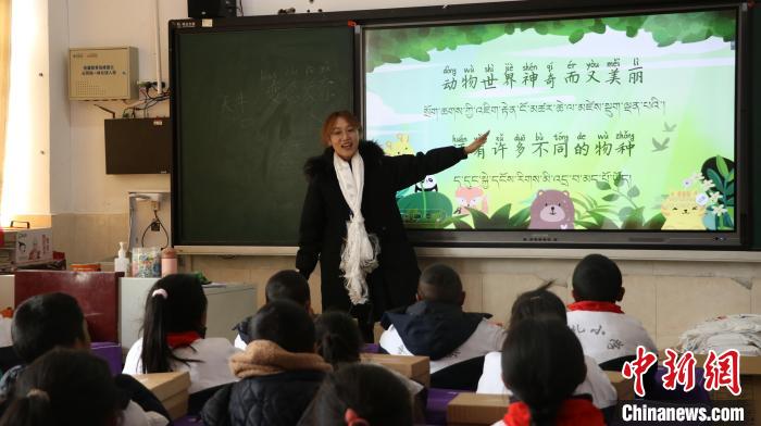 圖為西南林業(yè)大學(xué)科普團隊成員為學(xué)生上生態(tài)科普課。那曲市林草局供圖