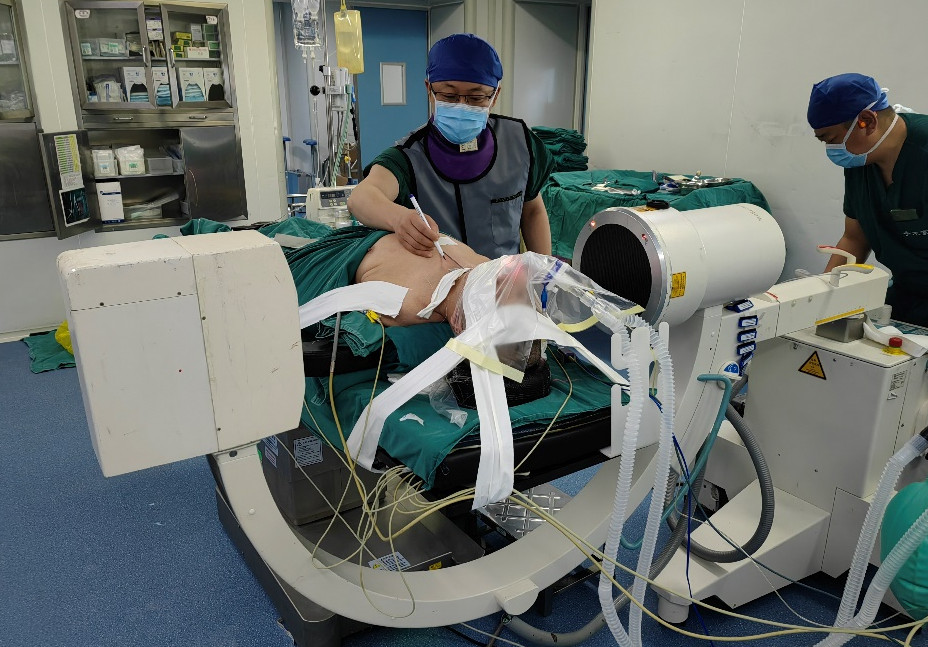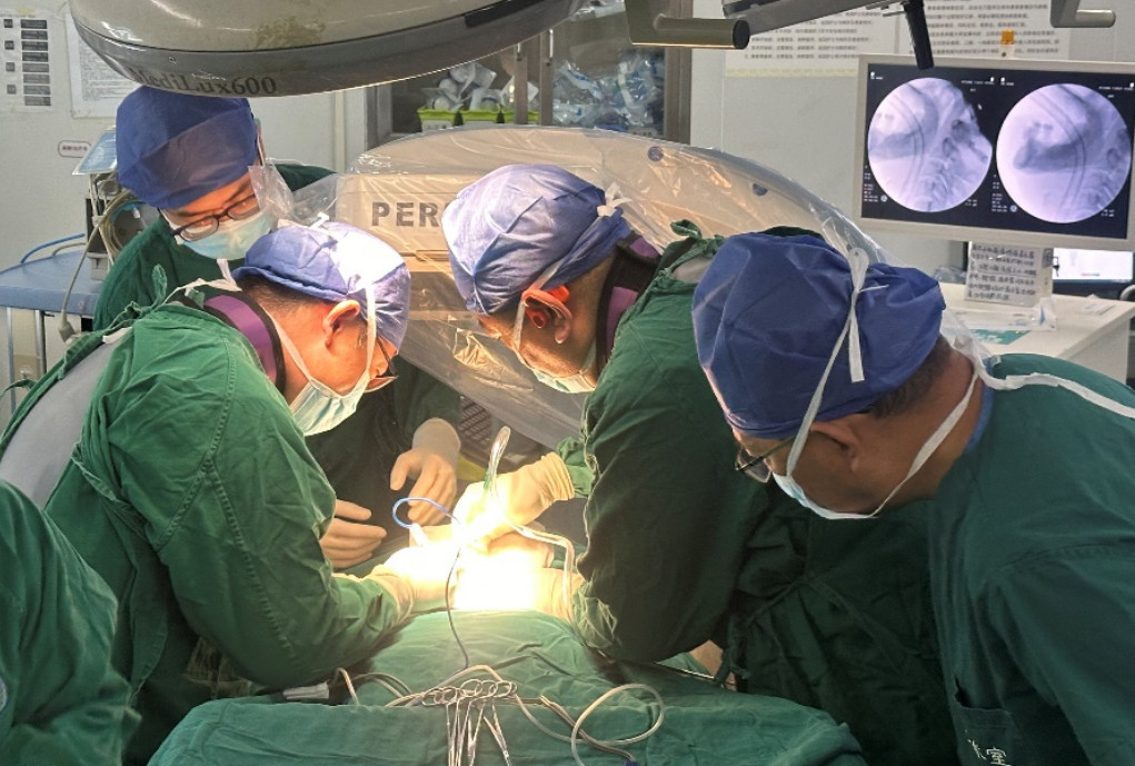 11月1日,西藏自治區(qū)人民醫(yī)院骨科脊柱組團(tuán)隊在蔡思逸主任帶領(lǐng)下,在C臂機(jī)實(shí)時透視下,按照計劃順利完成了經(jīng)前路微創(chuàng)樞椎齒狀突骨折固定手術(shù)。
