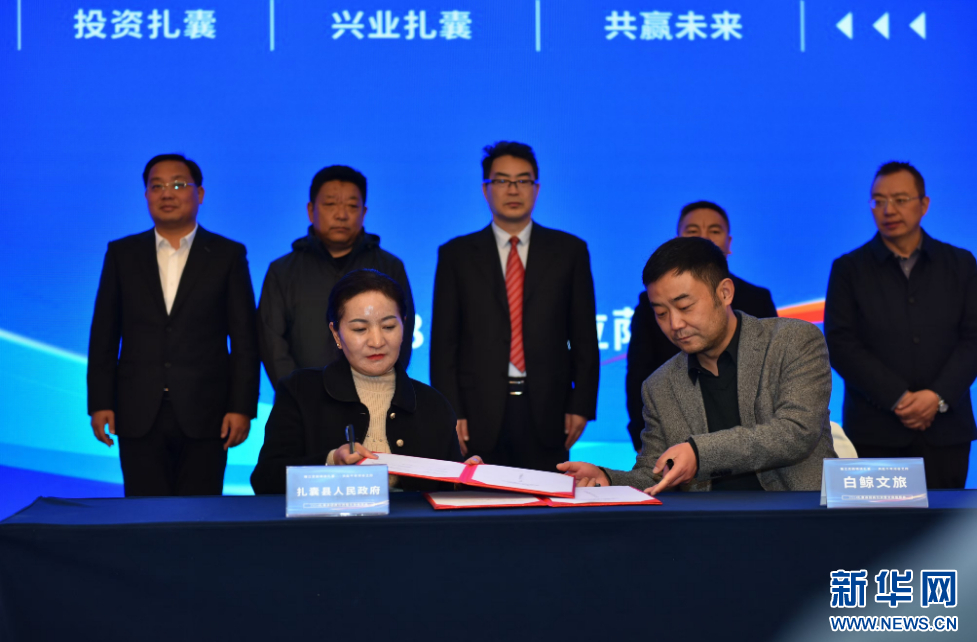 扎囊縣領(lǐng)導(dǎo)干部與意向落地企業(yè)在推介會(huì)現(xiàn)場(chǎng)簽約。(受訪對(duì)象供圖)