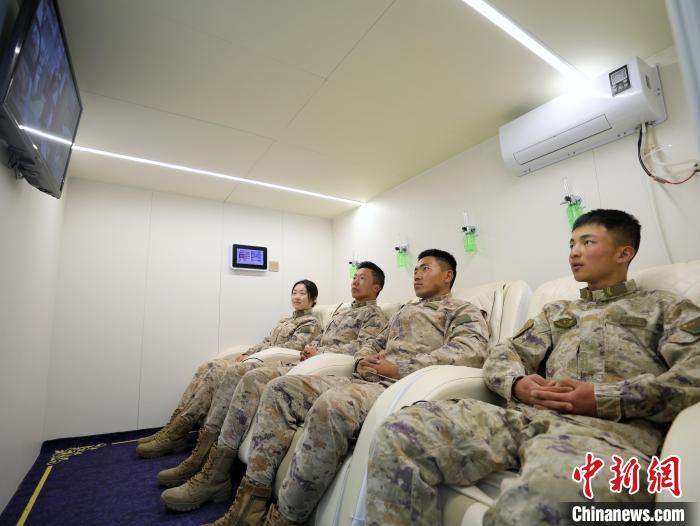 圖為駐地官兵體驗(yàn)微壓富氧艙。黎子億 攝