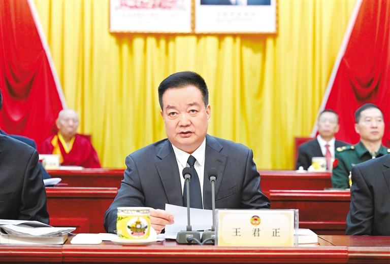 王君正強調(diào),要堅持圍繞中心、服務(wù)大局,努力為建設(shè)社會主義現(xiàn)代化新西藏獻計出力。在鞏固和發(fā)展最廣泛的愛國統(tǒng)一戰(zhàn)線上履職盡責(zé),堅持大團結(jié)大聯(lián)合,深入踐行全過程人民民主,加強與各界人士的團結(jié)聯(lián)誼,引導(dǎo)各族群眾堅定不移聽黨話、感黨恩、跟黨走;發(fā)揮人民政協(xié)在對外交往中的作用,讓世界了解真實、現(xiàn)代化、幸福的西藏,讓西藏更快走向世界。在落實“穩(wěn)定、發(fā)展、生態(tài)、強邊”四件大事中建功立業(yè),堅持把政協(xié)工作置于西藏經(jīng)濟社會發(fā)展大局中思考謀劃推動,圍繞創(chuàng)建全國民族團結(jié)進步模范區(qū)、創(chuàng)建高原經(jīng)濟高質(zhì)量發(fā)展先行區(qū)、創(chuàng)建國家生態(tài)文明高地、創(chuàng)建國家固邊興邊富民行動示范區(qū)等自治區(qū)黨委中心工作,深入開展協(xié)商議政,積極建言獻策。在進一步全面深化改革上凝聚共識,積極健全政協(xié)工作制度機制,著力健全政協(xié)深度協(xié)商互動、意見充分表達、廣泛凝聚共識的機制,把各族各界、各行各業(yè)促改革、謀發(fā)展的智慧和力量凝聚起來,匯聚起深化改革的強大合力。在改善民生、凝聚人心上積極作為,圍繞解決制約西藏經(jīng)濟社會發(fā)展的人口、人心、人才問題,多建創(chuàng)新之言、多獻務(wù)實之策,多做知民情、解民憂、暖民心的工作,不斷提高各族群眾的獲得感、幸福感、安全感。
