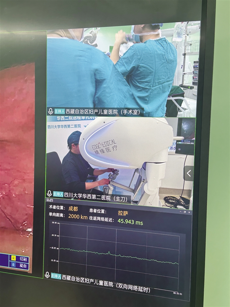 梅玲介紹,此次手術(shù)是與四川大學(xué)華西第二醫(yī)院聯(lián)合開展的,由四川大學(xué)華西第二醫(yī)院的鄭瑩教授團(tuán)隊(duì)主刀,并依托華西的先進(jìn)技術(shù)平臺,通過遠(yuǎn)程方式完成手術(shù)。手術(shù)結(jié)束后,鄭瑩教授通過視頻向大家介紹,這場跨越2000公里距離與3000米海拔差異的手術(shù),總共用時1小時45分鐘,網(wǎng)絡(luò)延遲僅40毫秒。“此次手術(shù)的成功為今后更多優(yōu)質(zhì)資源技術(shù)送達(dá)偏遠(yuǎn)地區(qū)提供了重要參考,也為提高西藏醫(yī)療水平打下了堅(jiān)實(shí)的基礎(chǔ)?!编崿撜f。