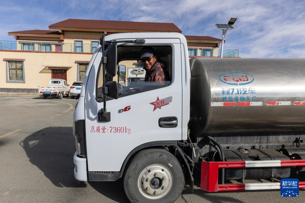 11月28日,駕駛員用罐車將巴氏殺菌后的新鮮牦牛奶運往拉薩市場。新華社記者 姜帆 攝
