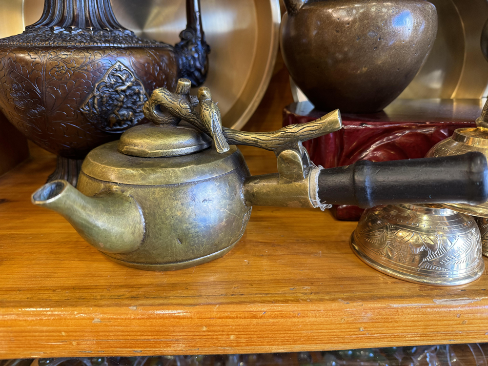 工藝品商戶:這是茶壺,搭在火爐上面邊燙邊喝的,是純手工做的,屬于藏文化……