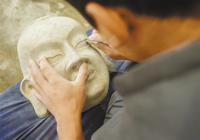 在拉薩市達(dá)孜區(qū)雪鄉(xiāng)民間傳統(tǒng)手工藝農(nóng)民專業(yè)合作社的小院里,拉薩布制面具制作技藝西藏自治區(qū)級非遺傳承人西洛和徒弟們忙得熱火朝天,他們正在制作面具。面具制作工序繁雜,制作一個面具包括雕刻、分層、風(fēng)干和噴漆等十幾道工序。2012年,在政府的扶持下,西洛創(chuàng)辦了傳統(tǒng)手工藝合作社,主要制作和銷售藏戲面具。西洛制作的面具造型精美,廣泛運用于藏戲表演中?!懊婢叩膬r格從幾百元到幾萬元不等,大部分訂單來自西藏的各大藏戲團(tuán)?!蔽髀逭f。近年來,合作社不斷吸納當(dāng)?shù)厝罕妼W(xué)習(xí)面具制作技藝,不僅為當(dāng)?shù)厝罕娞峁┚蜆I(yè)機會,也進(jìn)一步助力非物質(zhì)文化遺產(chǎn)的保護(hù)和發(fā)展。