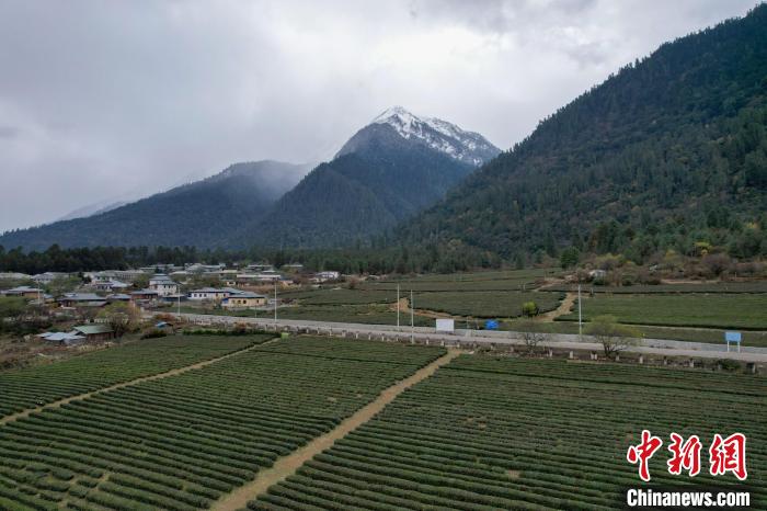 12月13日,西藏林芝波密縣易貢茶場(chǎng)雪山、茶田風(fēng)光。(無人機(jī)畫面)中新社記者 江飛波 攝