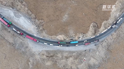養(yǎng)路工人繼續(xù)著他們的養(yǎng)護(hù)工作