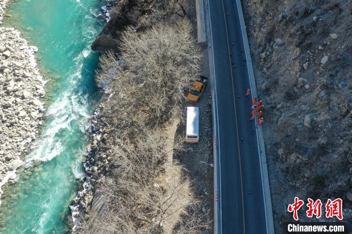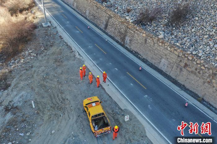 12月16日,西藏自治區(qū)林芝公路事業(yè)發(fā)展和應(yīng)急保障中心(工布江達(dá)養(yǎng)護(hù)段)道路養(yǎng)護(hù)工人及時清除川藏公路上的落石,保障道路暢通。該養(yǎng)護(hù)段擔(dān)負(fù)著川藏公路沿線工布江達(dá)縣路段的養(yǎng)護(hù)管理、應(yīng)急搶險等工作,包括路面修補(bǔ)、清理邊溝、維護(hù)交通安全設(shè)施等日常養(yǎng)護(hù)工作。圖為養(yǎng)護(hù)工人在公路上巡護(hù)。(無人機(jī)照片)中新社記者 貢嘎來松 攝