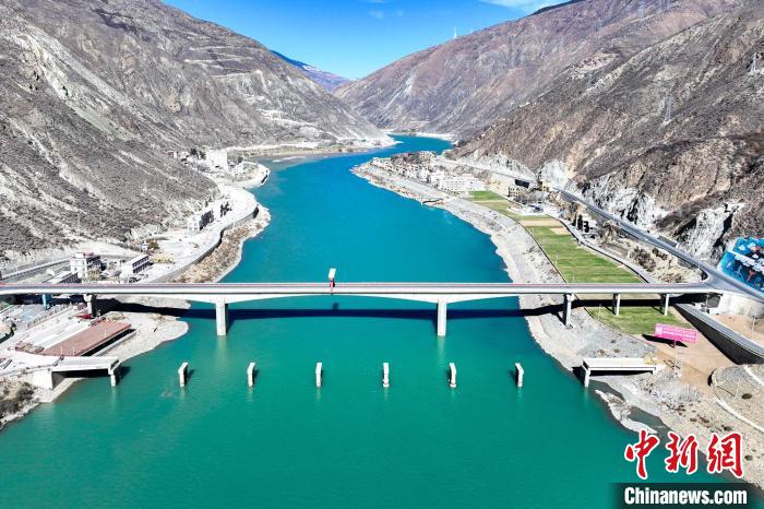 今年是川藏公路、青藏公路(簡稱“兩路”)通車70周年。70年來,“兩路”是西藏的經(jīng)濟(jì)命脈,更是西藏與其他省區(qū)交往交流交融之路。圖為12月21日,川藏交界的金沙江大橋。(無人機(jī)照片) 薛蒂 攝