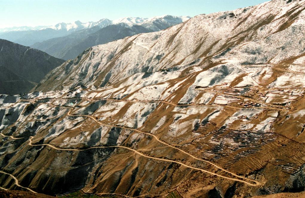 二十世紀(jì)90年代蜿蜒曲折的川藏公路。