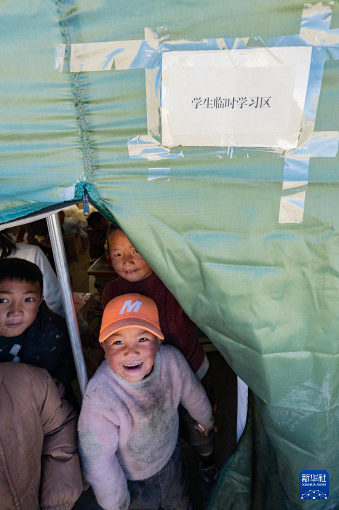 1月10日在定結縣郭加鄉(xiāng)乃村安置點學生臨時學習區(qū)拍攝的孩子們。新華社記者 丁增尼達 攝