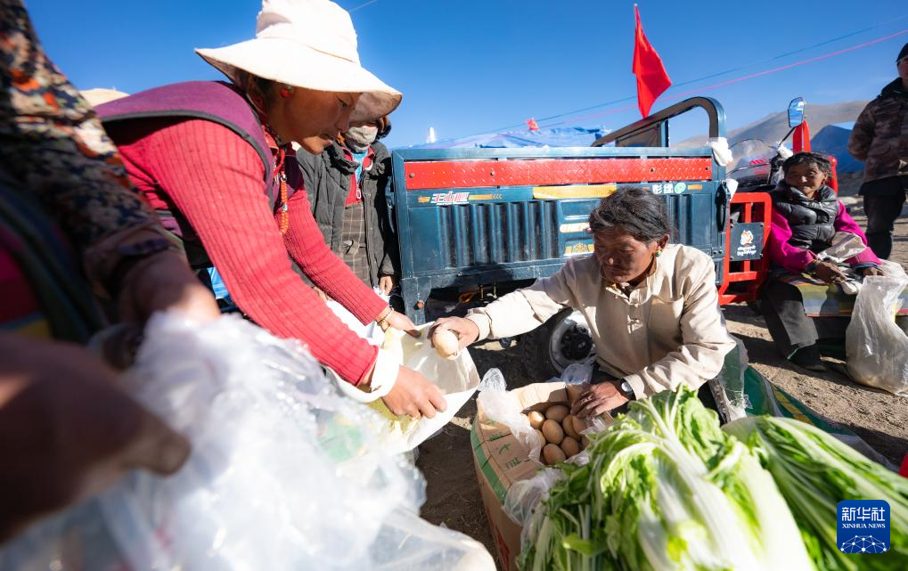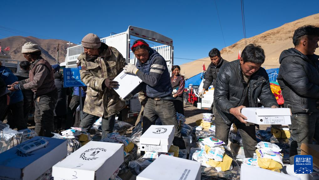 1月10日,在定結縣郭加鄉(xiāng)切村安置點,群眾分配救災物資。新華社記者 丁增尼達 攝