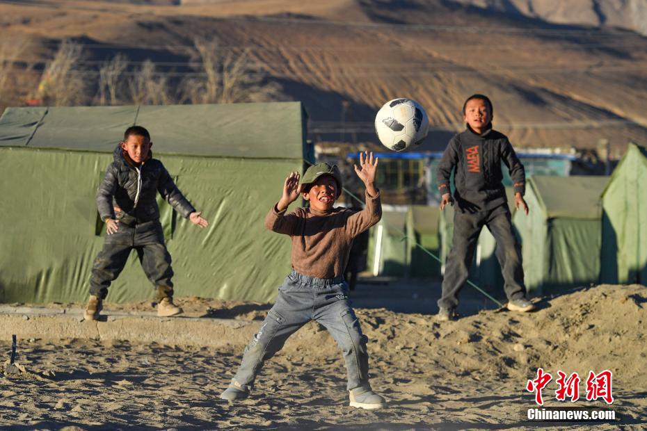 1月10日,在西藏日喀則市定日縣長(zhǎng)所鄉(xiāng)森嘎村安置點(diǎn),夕陽(yáng)下,孩子們分組開(kāi)展點(diǎn)球大戰(zhàn)。地震雖給村莊帶來(lái)傷痛,但安置點(diǎn)物資保障充足,孩子們?cè)谄D苦環(huán)境中仍保持樂(lè)觀,用簡(jiǎn)單的游戲傳遞著對(duì)生活的熱愛(ài)和希望。貢確 攝