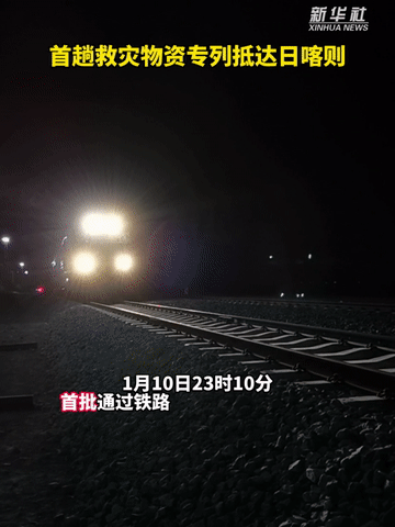 1月10日23時10分,首批通過鐵路運輸?shù)目拐鹁葹?zāi)物資搭載95001次專列順利抵達(dá)西藏自治區(qū)日喀則西站。