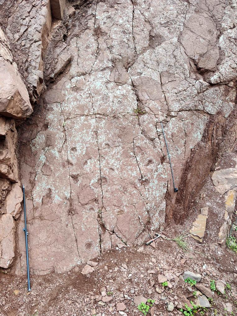 發(fā)現小型蜥腳類恐龍足跡的巖石石壁。(受訪者供圖)