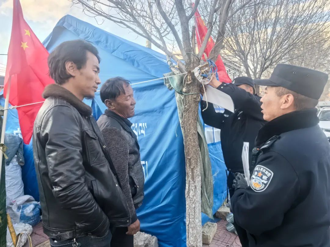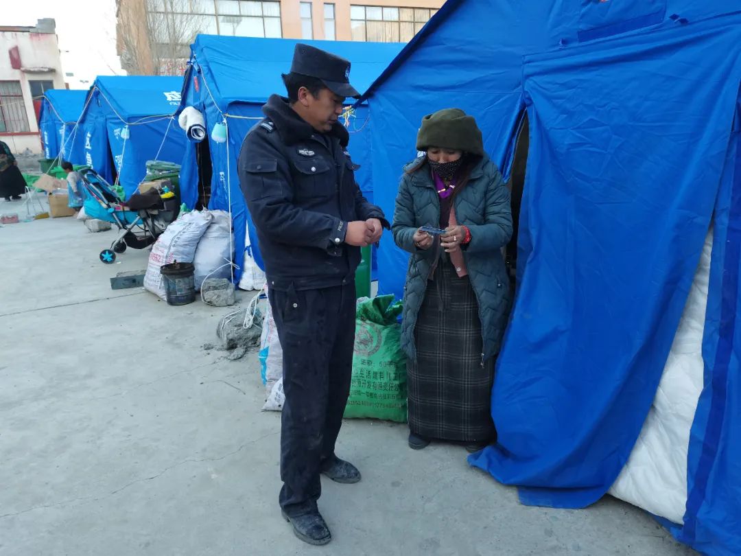 天還未亮,民輔警已投身救災一線,忙碌于清點救援物資。緊接著,他們步履不停,深入每一村每一戶,細致收集家庭基本信息,評估受災程度及房屋損毀情況,并逐一核實帳篷內供暖、供電等基本生活需求的落實情況。走訪之際,一張張警民聯系卡被張貼于顯眼位置,親手遞到群眾手中,旨在迅速響應群眾訴求,引導合理表達困難與期望。同時,他們對孤寡老人、殘疾人、精神病患者、流浪人員及重癥病患等特殊群體給予了特別關注,積極協調資源,切實解決其實際難題,構建起一座堅實的警民溝通橋梁。為確保轄區(qū)安寧,民輔警們進一步加大了社會面巡邏力度,細致排查潛在矛盾糾紛,全力預防偷盜、詐騙、搶劫等違法犯罪行為,當得知群眾財物被困且面臨損毀,他們不顧危險,憑專業(yè)技能穿梭廢墟,爭分奪秒搶救財物,全力守護群眾財產安全。在這過程中,民輔警不辭辛勞,反復穿梭于村落之間,確保救助工作覆蓋到每一個角落,每一個人,無論多少次往返,只為確?!安宦┮粦?,不落一人”?!熬焱?,你們辛苦了!”“感謝你們的付出,為你們點贊加油!我們一起努力戰(zhàn)勝災情!”……群眾一句句暖心的話語,化作源源不斷的動力,讓民輔警們更加堅定了抗震救災必勝的信心 。