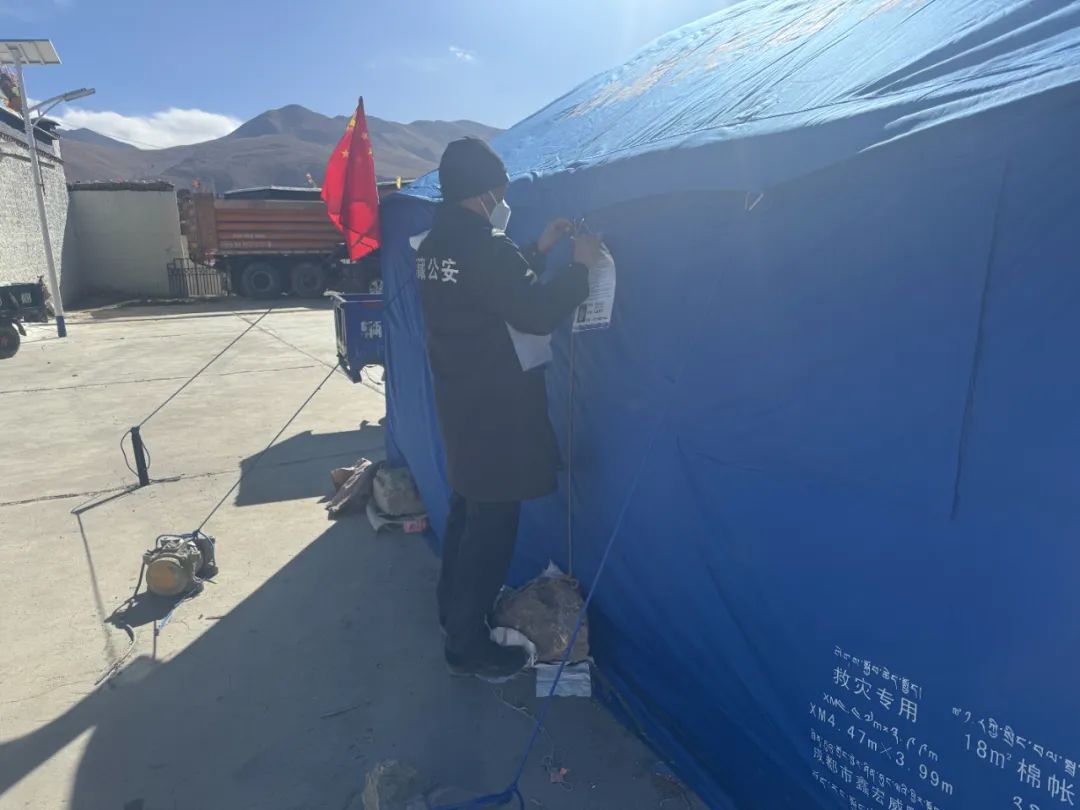 災情如令,責任重于泰山。在這場爭分奪秒與時間賽跑的抗震救災戰(zhàn)斗中,拉孜公安始終堅定地與群眾并肩同行,以“伴隨式”守護的帳篷警務室,為受災群眾筑牢安全防線。一頂頂 “帳篷警務室” 以迅雷不及掩耳之勢搭建完成,恰似一座座堅固的堡壘;一面面鮮艷的黨旗在廢墟之上獵獵作響,傲然飄揚,它們共同構成了守護受災群眾生命財產安全的鋼鐵長城,成為抗震救災戰(zhàn)場上一道令人動容的亮麗風景線 。