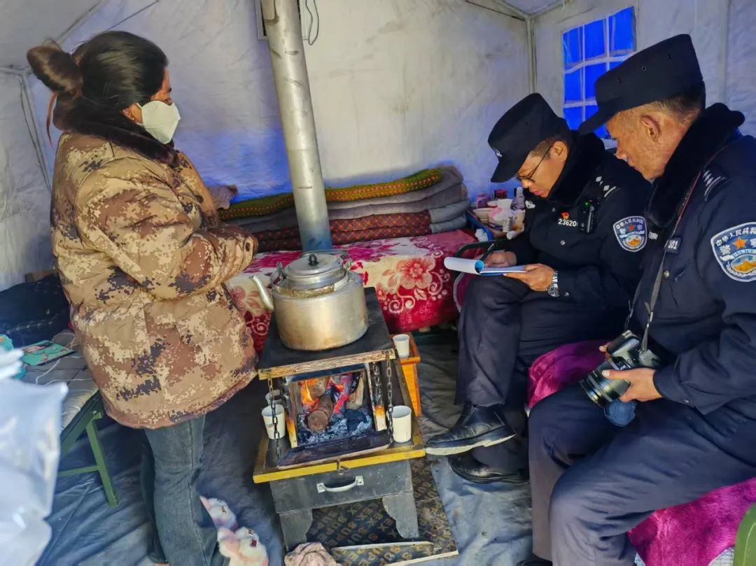 民輔警們穿梭于安置點(diǎn)的帳篷間,每到一處,都與群眾親切交談。“晚上睡覺冷不冷?”“吃飯還習(xí)慣嗎?”簡單的話語,飽含著無盡的關(guān)切。他們神情專注,認(rèn)真傾聽群眾的反饋,無論是基本的衣食住行問題,還是特殊的醫(yī)療需求,都詳細(xì)記錄在冊。對于行動不便的老人與殘疾人,民輔警們更是格外關(guān)注,耐心細(xì)致地詢問他們在生活中遇到的種種困難,力求在第一時間給予解。