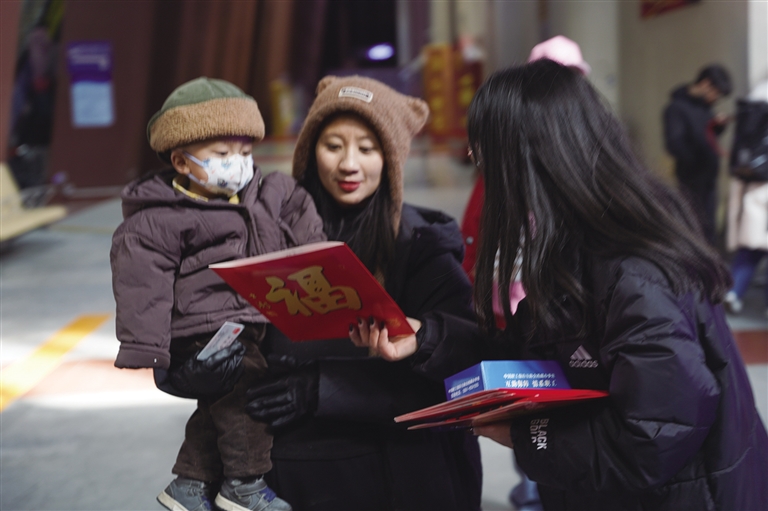 1月14日15時(shí)許,拉薩火車(chē)站候車(chē)大廳人頭攢動(dòng),熱鬧非凡?;剜l(xiāng)的人們臉上都洋溢著幸福的笑容,期待著歸家的旅途。“你好,送你們一副對(duì)聯(lián),祝你們新春快樂(lè)?!焙蜍?chē)廳內(nèi),自治區(qū)總工會(huì)的工作人員將一副副喜慶的對(duì)聯(lián)送給踏進(jìn)火車(chē)站的人們,為他們送上新春的祝福和溫暖。