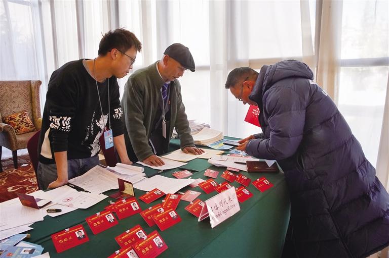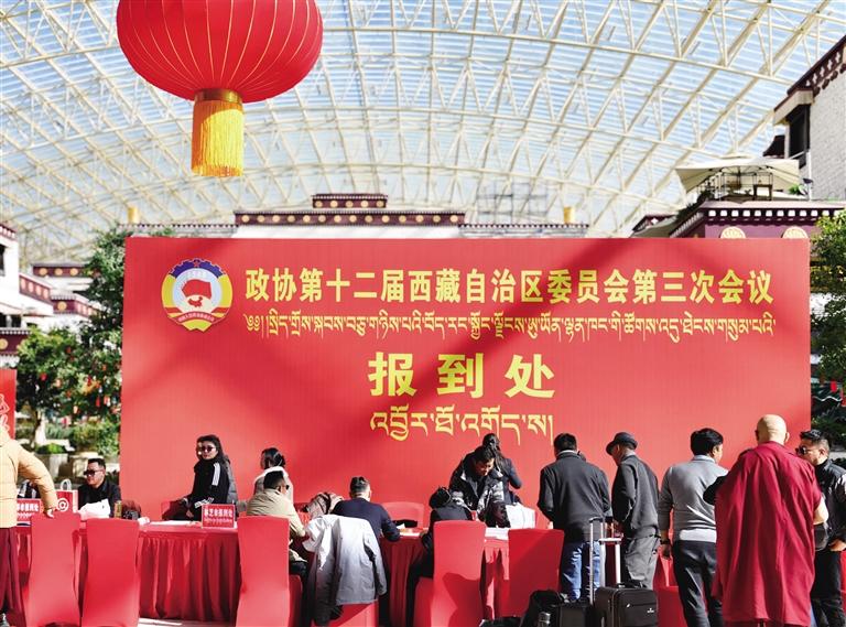 1月16日,參加自治區(qū)政協(xié)十二屆三次會議的委員向大會報(bào)到。記者 貢曲羅杰 攝