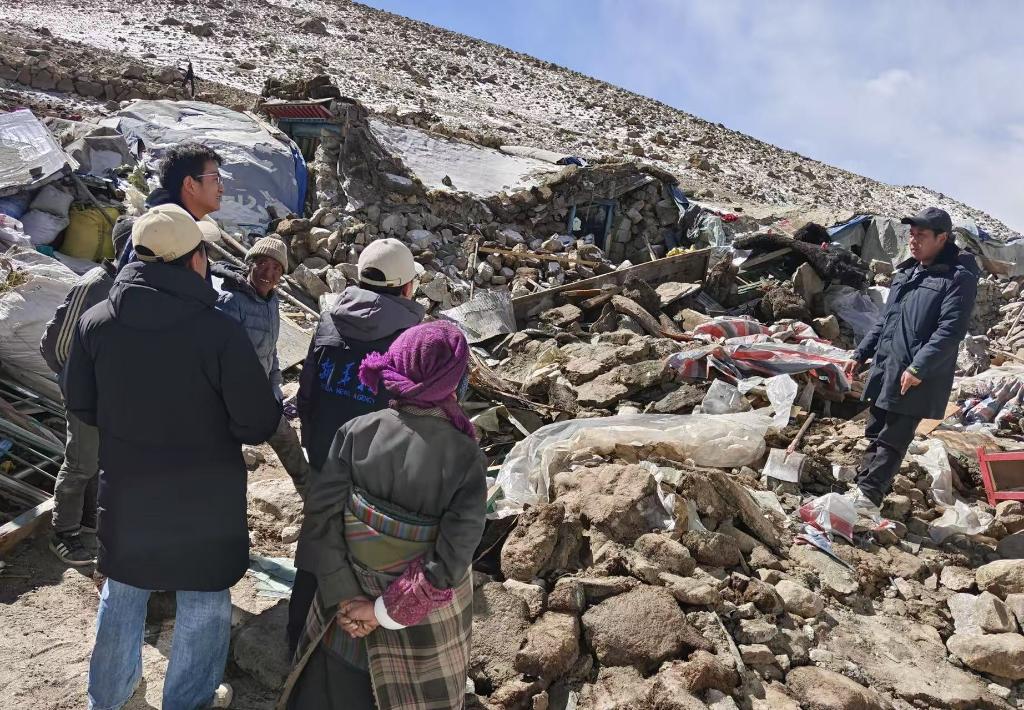 這次是政府工作人員第二次來到該村,核實(shí)災(zāi)情。珠桑一行人一到村里,開始查看房屋和羊圈倒塌廢墟,詢問牲畜傷亡和物資受災(zāi)情況。