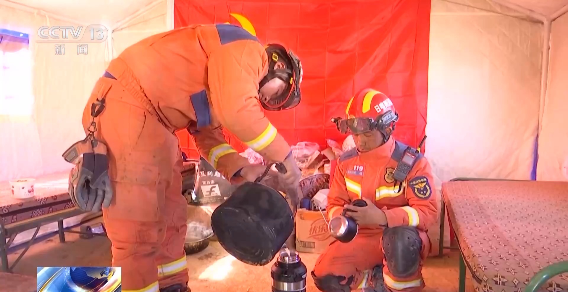 甜茶、藏面、熱牛奶,在這個臨時帳篷里,消防員們正在為木隊(duì)村的百姓們制作當(dāng)天的午飯。