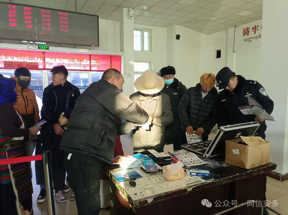 2025年1月23日,在蛇年春節(jié)返鄉(xiāng)潮的高峰,安多縣普法辦聯(lián)合縣禁毒辦在安多火車(chē)站開(kāi)展以“佳節(jié)返鄉(xiāng)潮,普法不停步,在車(chē)站點(diǎn)亮法治之光”為主題的宣傳活動(dòng),為歸心似箭的旅客們送上了一份特殊的“法律年貨”。