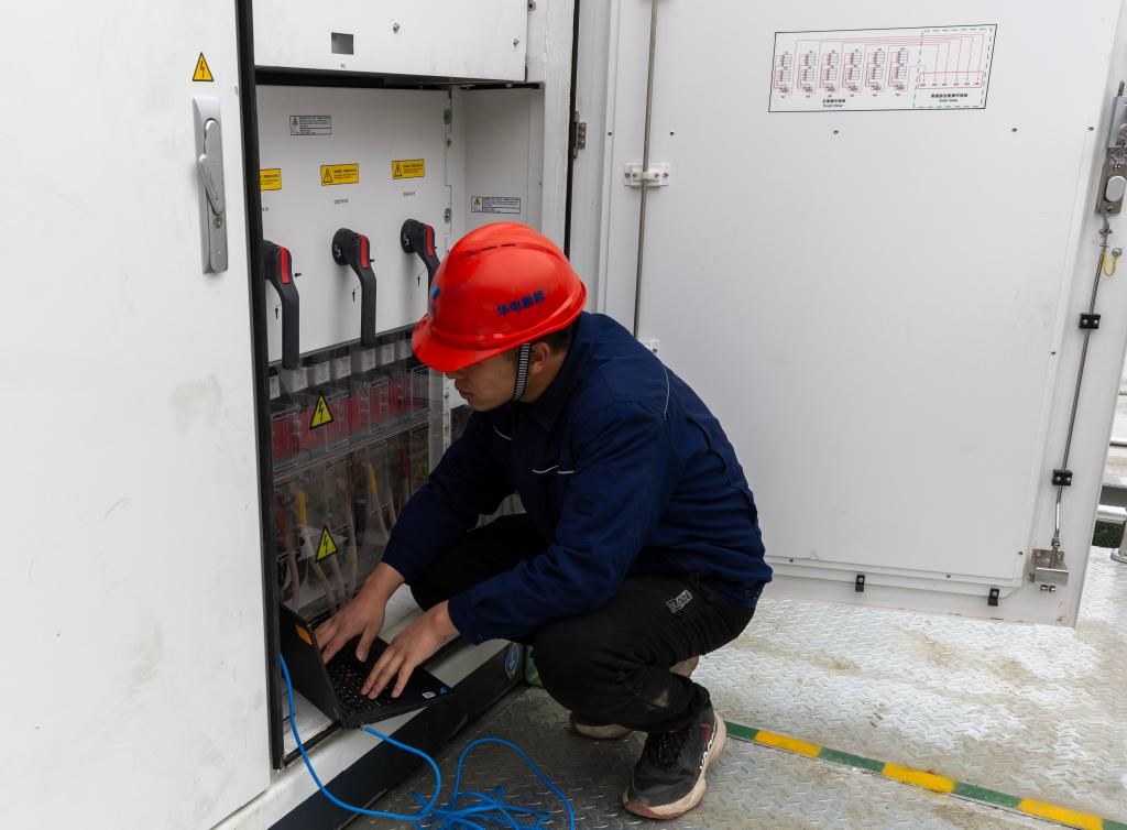 在華電西藏才朋光伏電站升壓站,工作人員正在檢查設備。新華社記者姜帆 攝