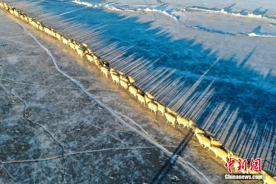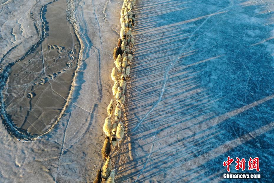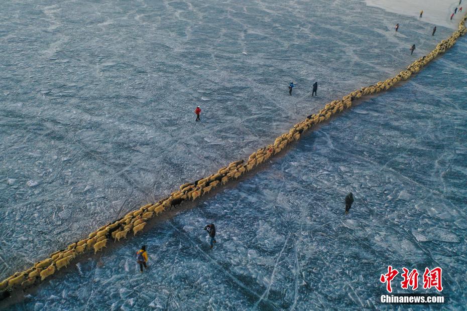 2月7日,西藏山南市浪卡子縣推瓦村1400多只羊通過普莫雍錯冰湖,前往湖心島。據(jù)悉,位于西藏山南市浪卡子縣的推瓦村,平均海拔約5070米,是世界上海拔最高的行政村,以牧業(yè)為主。由于推瓦村海拔高、夏季短,草場無法為羊群提供充足的過冬飼料,因此,每年高原最冷的時候,推瓦村牧民會把羊群趕到普莫雍錯水草豐茂的湖心島,依靠島上的草料度過最寒冷的冬期。圖為羊群通過普莫雍錯冰湖,前往湖心島。(無人機照片)中新社記者 貢嘎來松 攝
