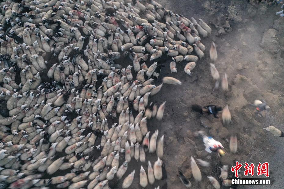 2月7日,西藏山南市浪卡子縣推瓦村1000多只羊通過普莫雍錯冰湖,前往湖心島。據(jù)悉,位于西藏山南市浪卡子縣的推瓦村,平均海拔約5070米,是世界上海拔最高的行政村,以牧業(yè)為主。由于推瓦村海拔高、夏季短,草場無法為羊群提供充足的過冬飼料,因此,每年高原最冷的時候,推瓦村牧民會把羊群趕到普莫雍錯水草豐茂的湖心島,依靠島上的草料度過最寒冷的冬期。圖為羊群到達湖心島。(無人機照片)中新社記者 貢嘎來松 攝