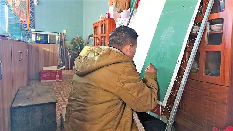 “那段時間是最難熬的,每天睜開眼除了吃飯,其他時間都在畫畫?!甭遄犯嬖V記者,當(dāng)他真正開始學(xué)習(xí)時,才深刻體會到要想成為唐卡手藝人,需要付出更多努力?!耙苍脒^放棄,但還是咬咬牙堅持了下來。”說到這里,洛追有些靦腆地笑了笑。