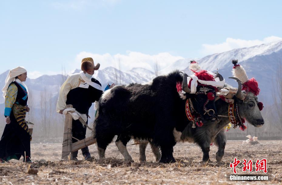 3月16日,是西藏農(nóng)區(qū)開耕的日子。村民身著節(jié)日盛裝,相聚在田間。傳統(tǒng)的“二牛抬杠”開啟“第一犁”后,拖拉機(jī)緊隨其后,婦女將手中的種子撒下,祈求風(fēng)調(diào)雨順、農(nóng)業(yè)豐收。圖為西藏拉薩市林周縣強(qiáng)嘎鄉(xiāng)春耕儀式現(xiàn)場。中新社記者 李林 攝