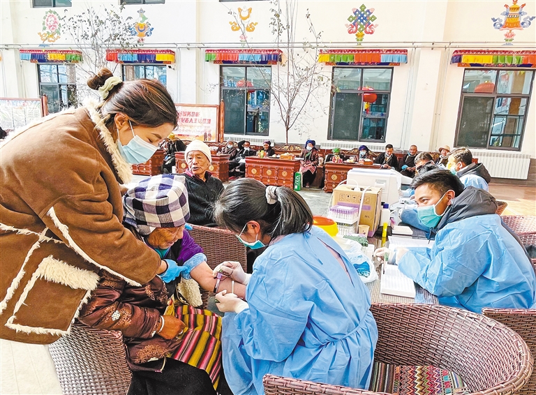近日,浪卡子縣中心人民醫(yī)院醫(yī)療團隊開展免費體檢公益活動,為浪卡子縣五保戶集中供養(yǎng)中心的特困人員送去關懷。