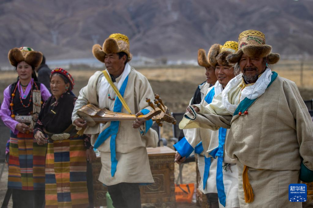 尼瑪(右)在春耕儀式上帶領(lǐng)村民載歌載舞(3月16日攝)。新華社記者 姜帆 攝