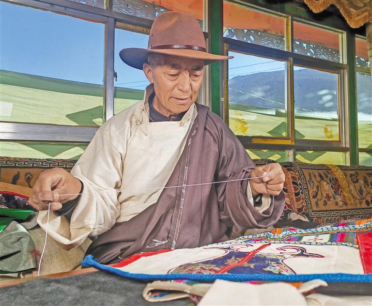達(dá)布林耐家族裁縫技藝集藏裝、藏戲服飾、寺廟用品及農(nóng)牧用具制作于一體,是墨竹工卡早期裁縫技藝的杰出代表,凝聚著深厚的文化底蘊(yùn)與藝術(shù)價(jià)值。秉持著純手工制作、質(zhì)量至上的理念,每一件出自達(dá)布林耐家族裁縫之