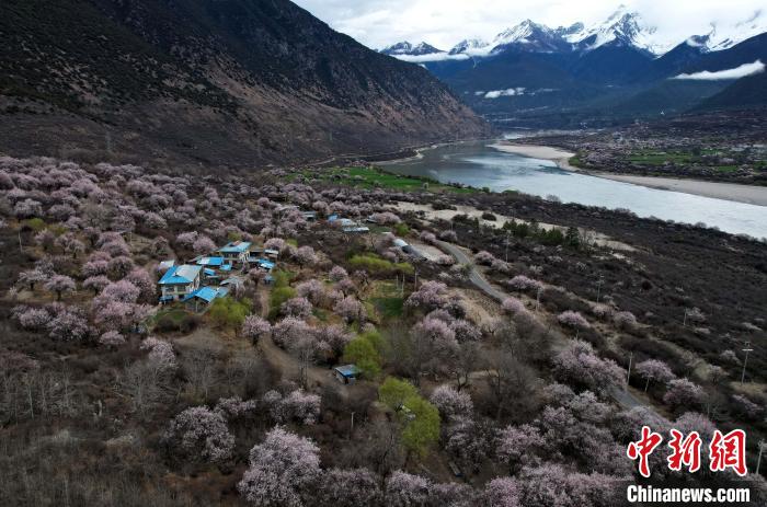 4日,西藏林芝米林市雅魯藏布江邊沿線桃花盛放,與雪山同框,景色美不勝收。