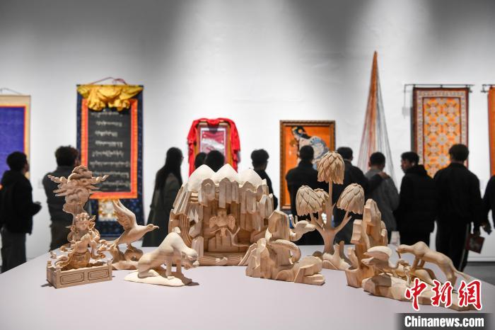 4月9日,“盛世禮贊·西藏工藝美術作品區(qū)內(nèi)巡展”在拉薩首展。此次展覽精心籌備,從西藏全區(qū)234位創(chuàng)作者送選的468件作品里,精心挑選出75位作者的100件代表作。展覽分為“精雕細琢·各美其美”“古韻丹青·美人之美”“多姿多彩·美美與共”三個板塊,借多種形式,全方位展示西藏自治區(qū)成立60年來傳統(tǒng)工藝美術行業(yè)的發(fā)展成就。圖為展覽現(xiàn)場。中新社記者 貢嘎來松 攝